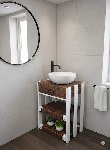 Gabinete MDF Branco e Freijó para cuba