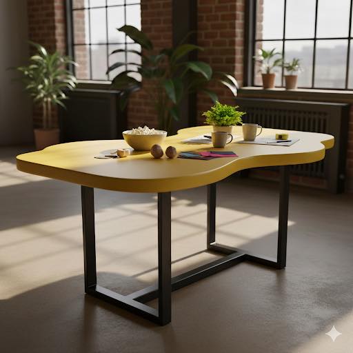 Mesa orgânica MDF Laqueado amarelo estilo industrial